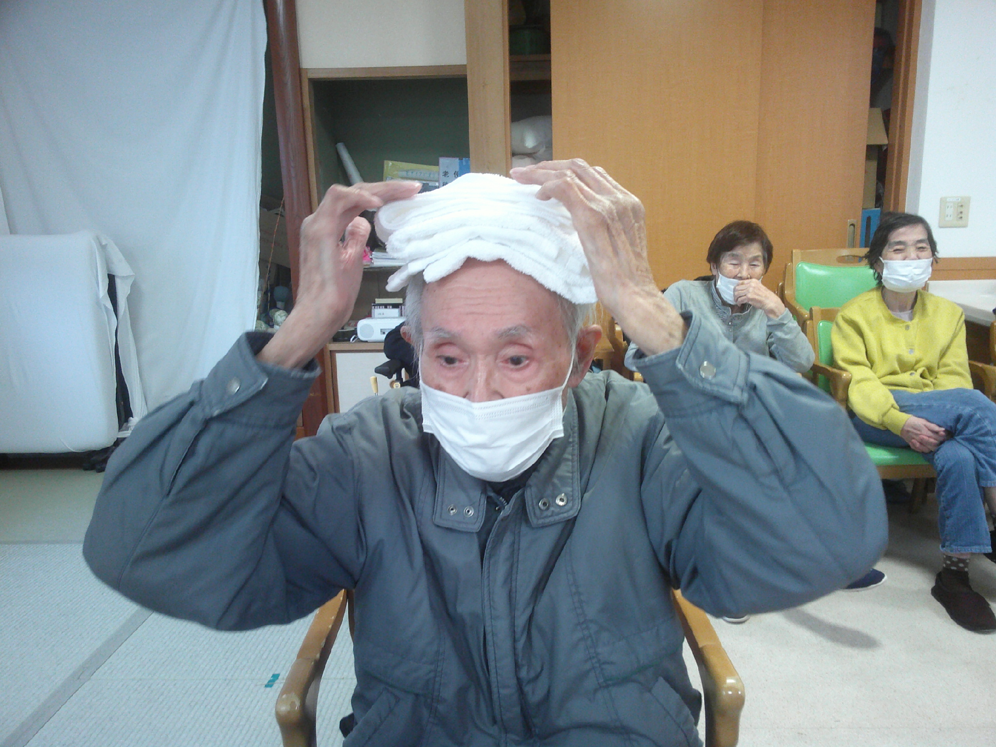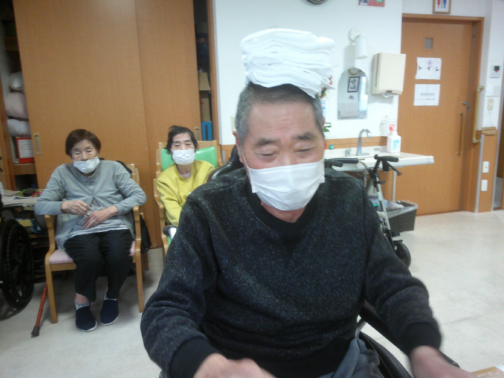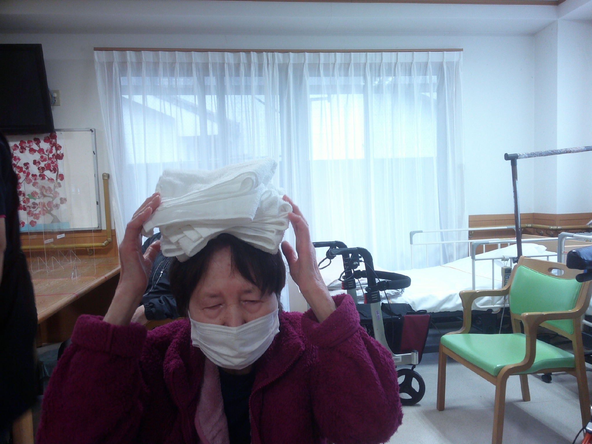 頭の上により多くのタオルを慎重に、慎重に・・・のせていきます♪