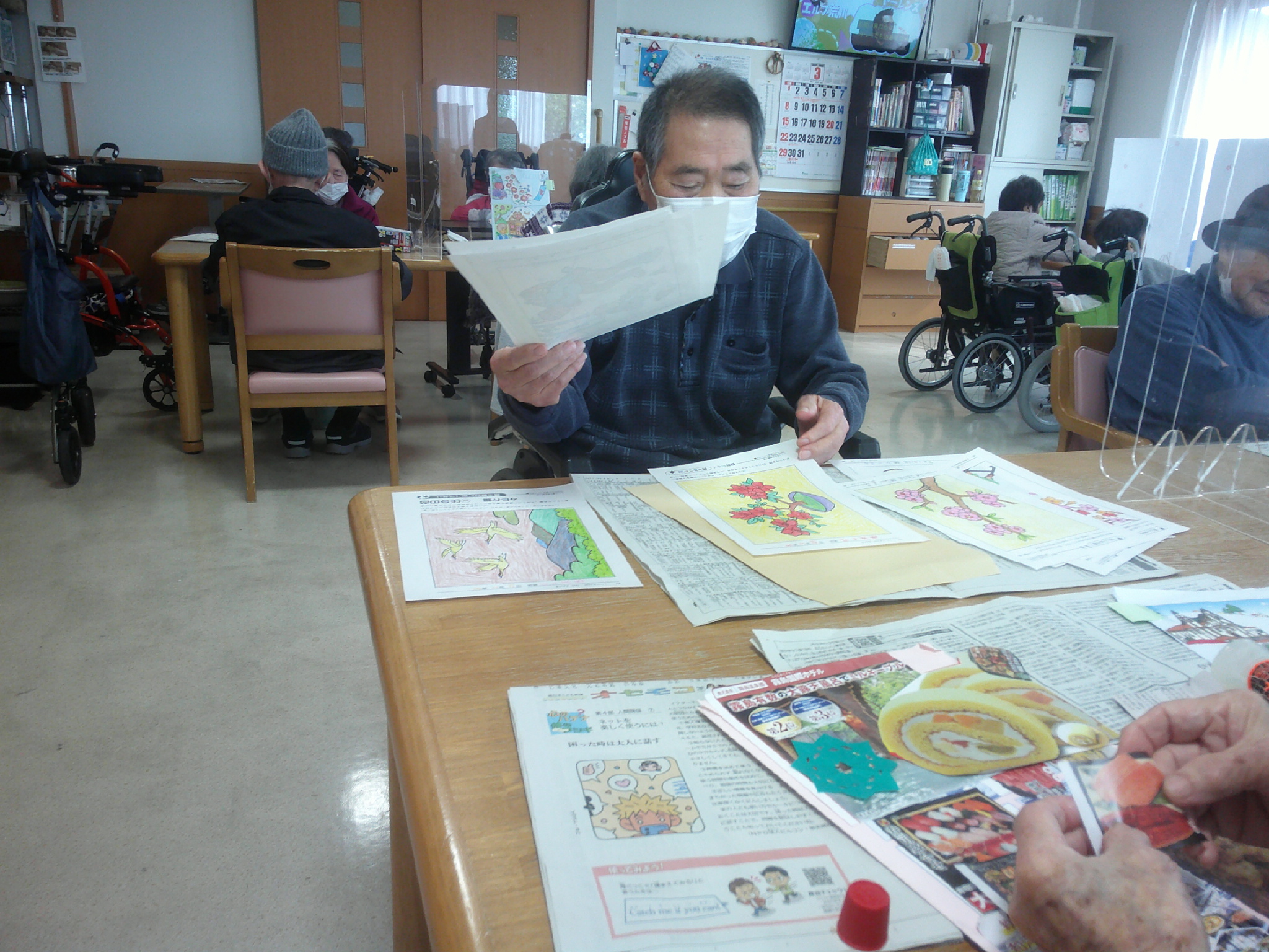 チラシの一部を張り付けたり、自分で色を塗った作品を切り取って貼っている方もいらっしゃいました🌟