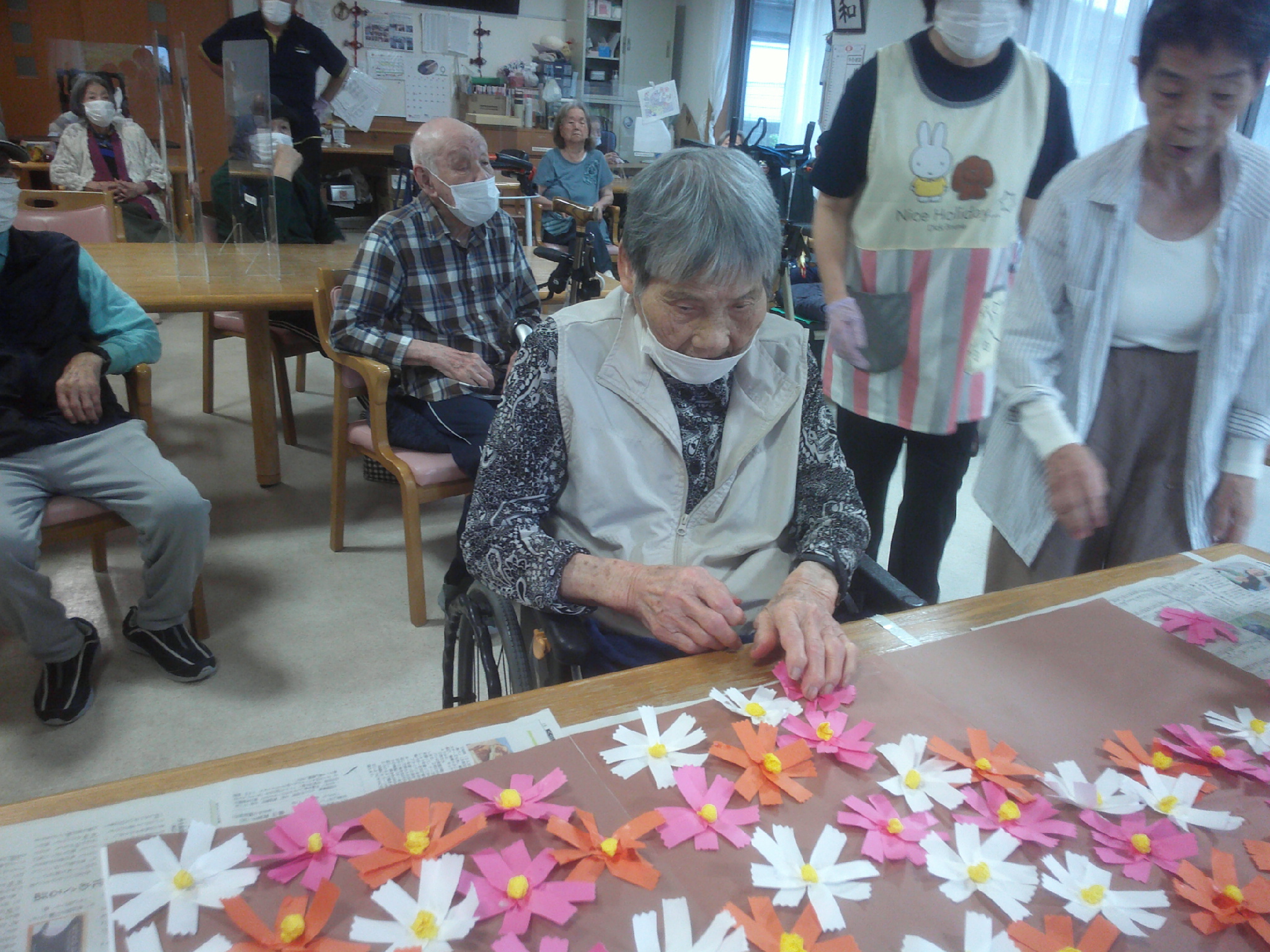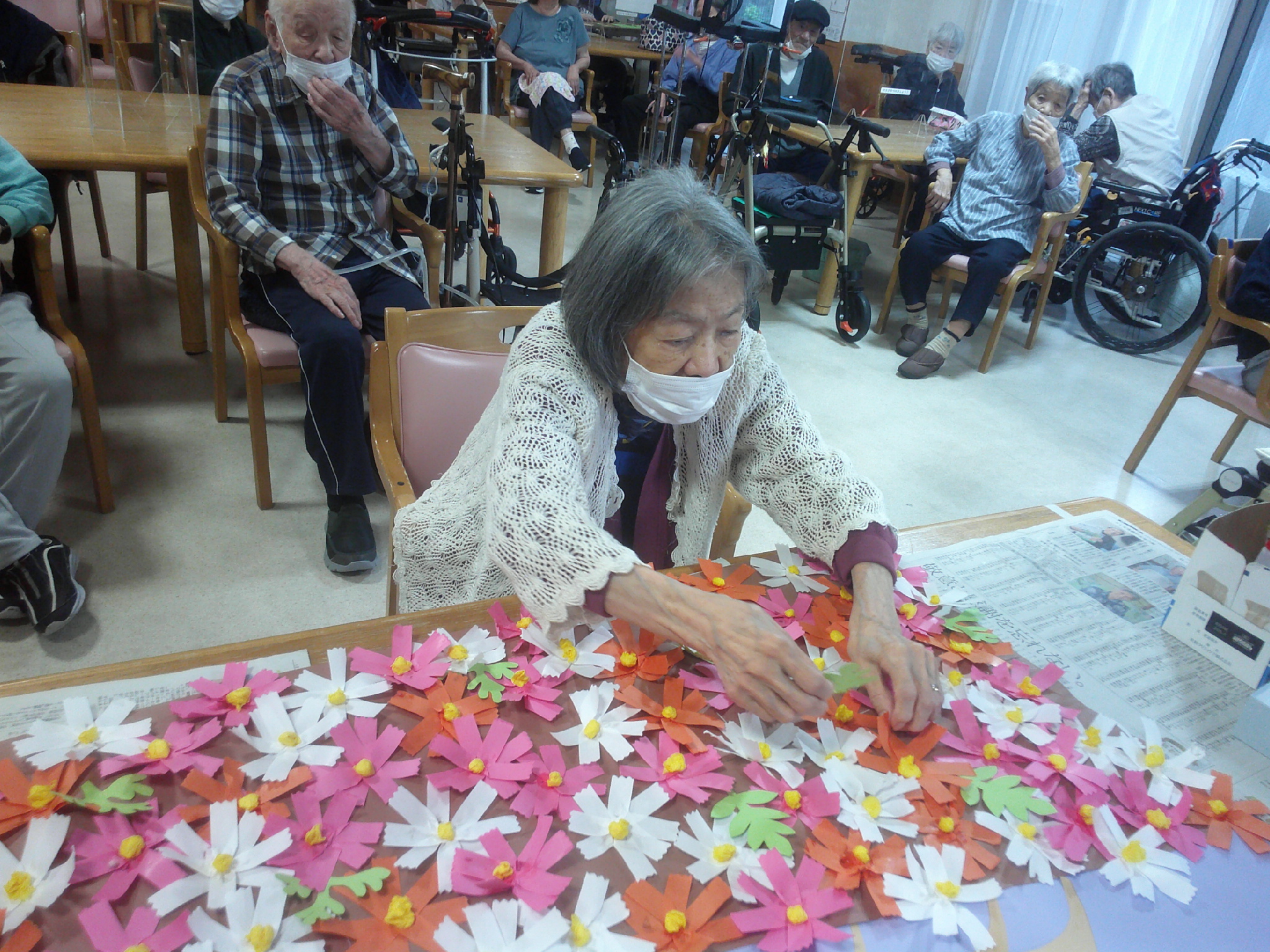 沢山のお花がとても綺麗でデイサービスも華やかになりました♪