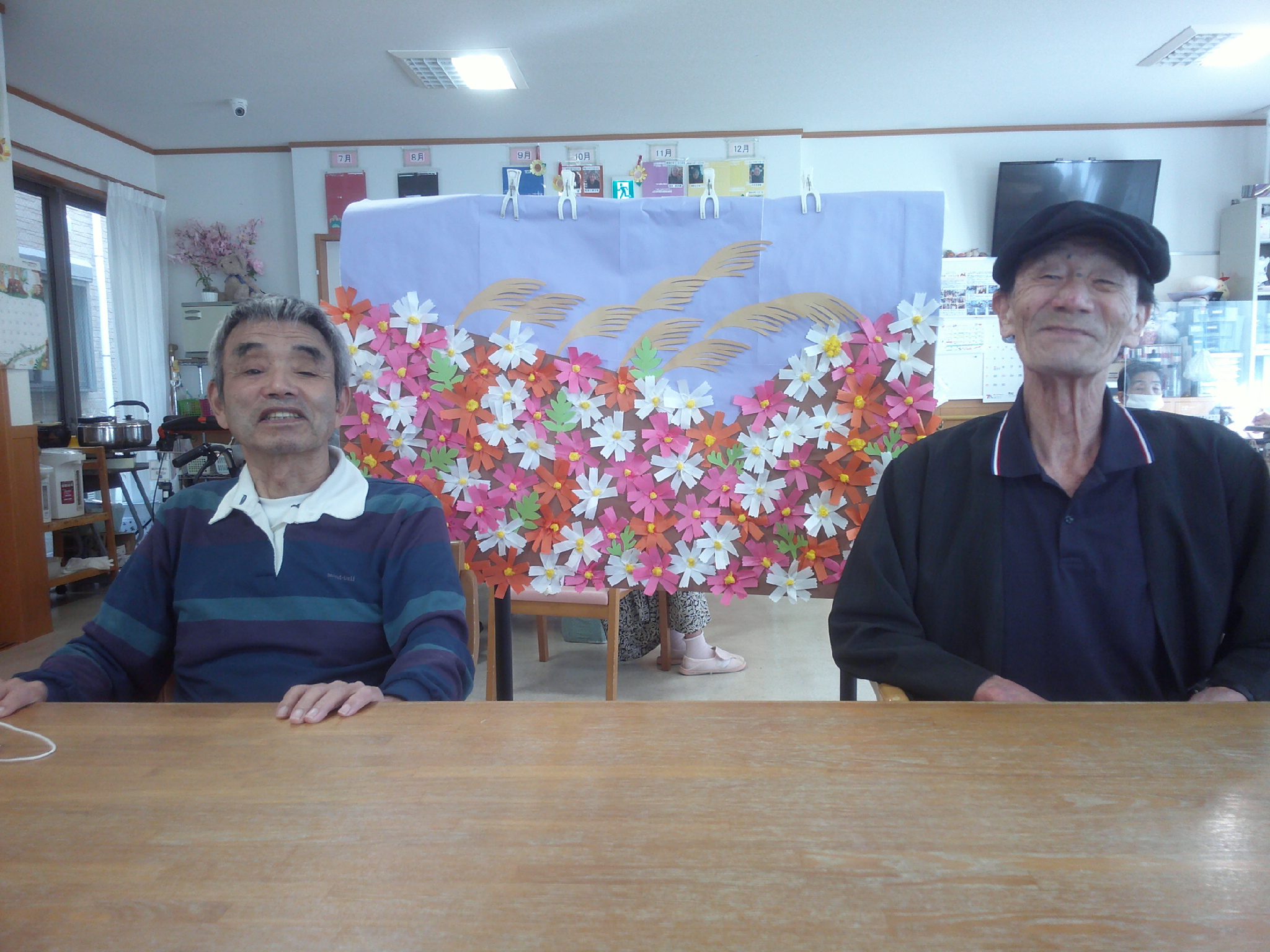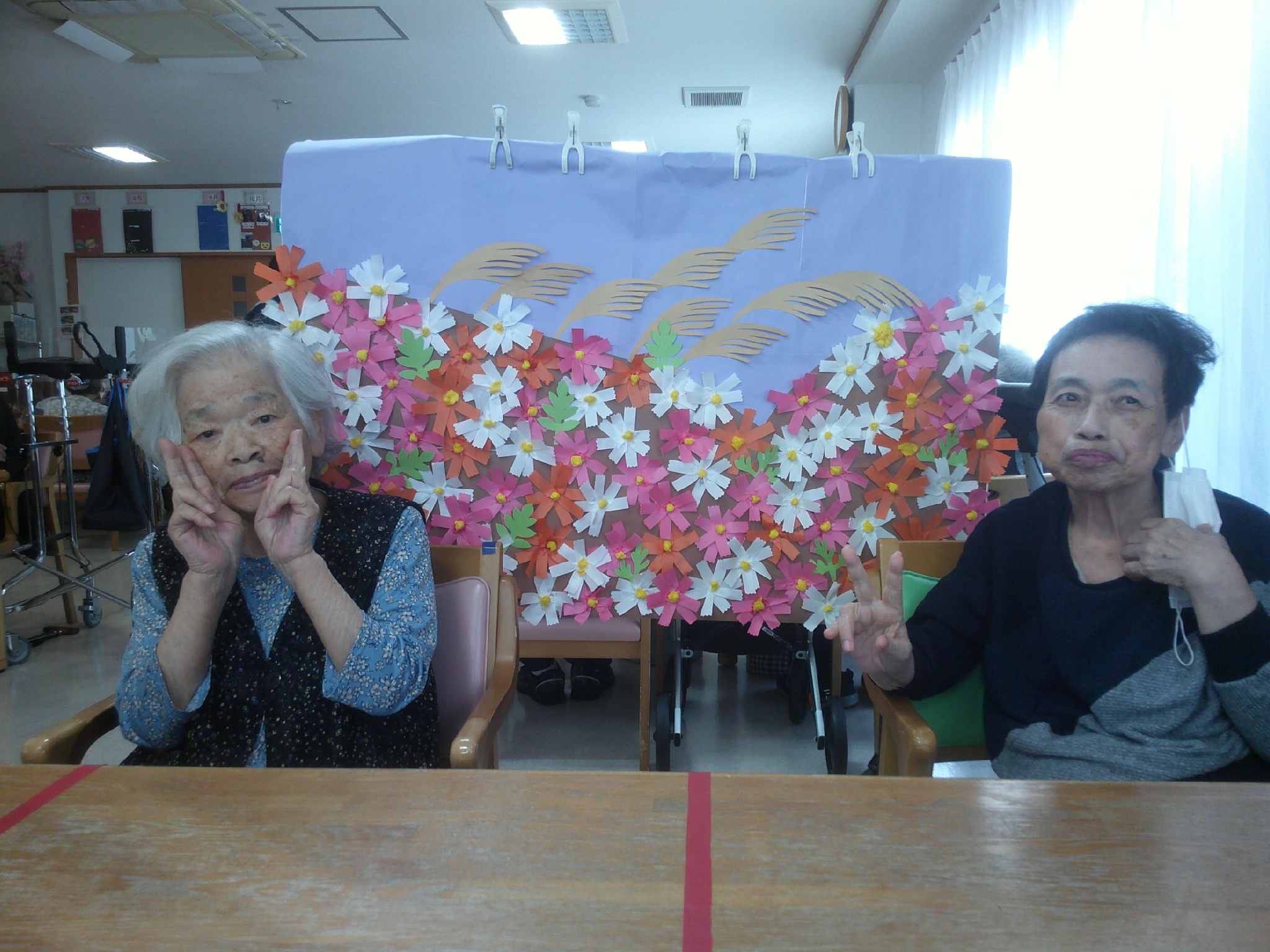 秋を感じるススキも貼り、秋を感じさせる壁画になりました🍁